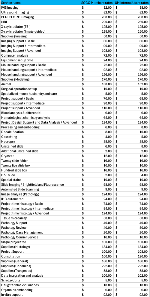 The Cancer Modeling Shared Resource will be updating its service rates, effective March 3rd, 2026.